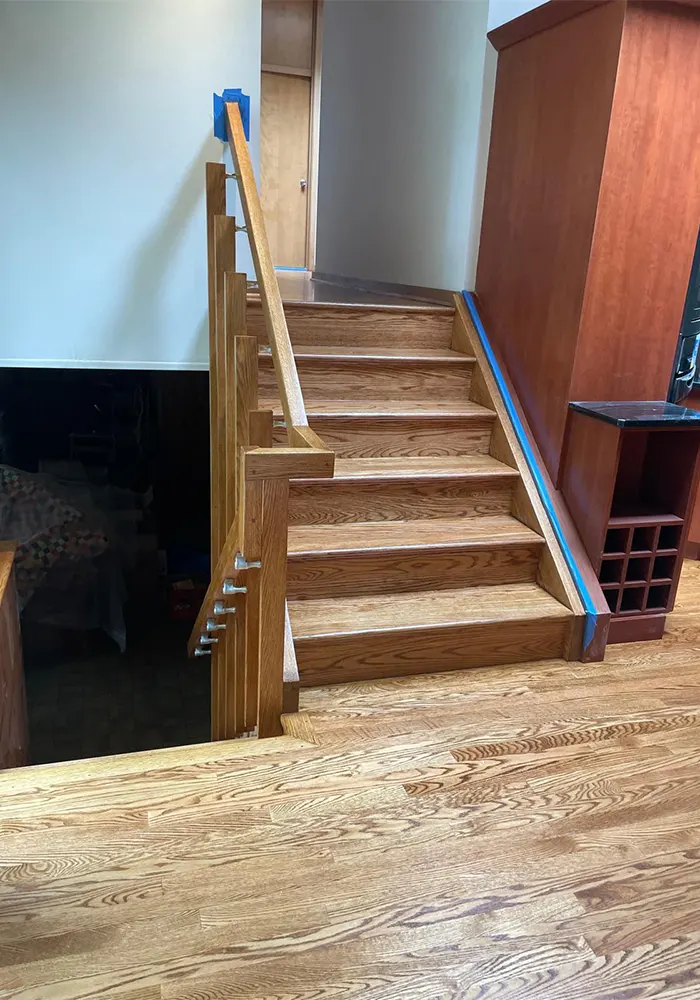 Our stair installations use LVP, laminate, or hardwood, providing safe, elegant, and durable finishes.